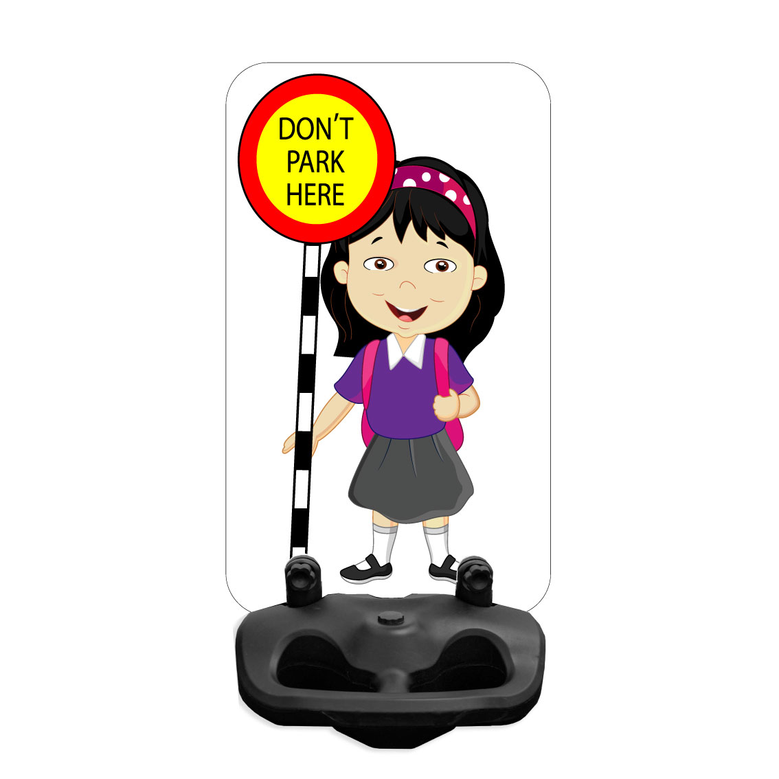 Choose from free standing school kid no parking double sided road safety sign.