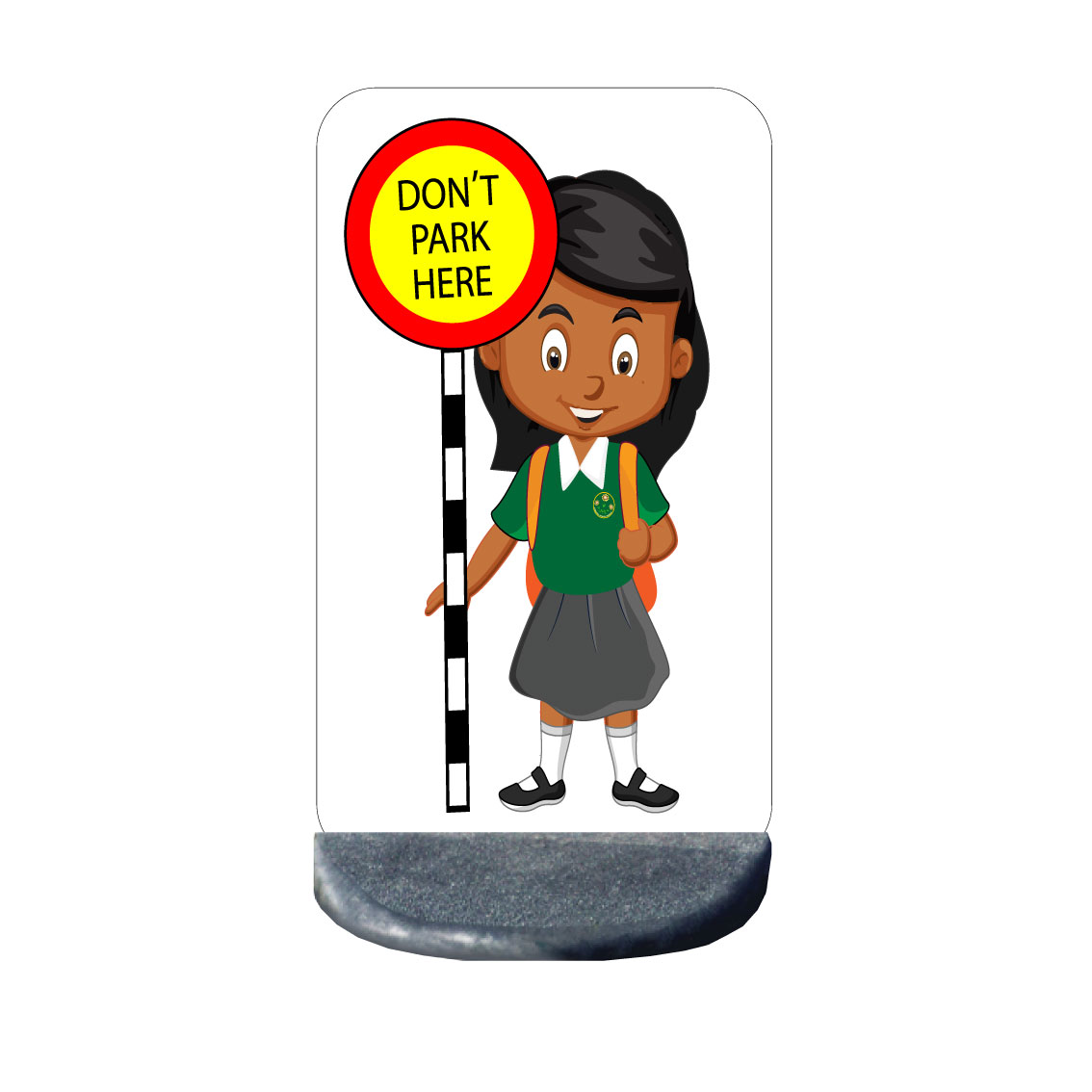 This is our free standing school kid no parking double sided road safety sign.